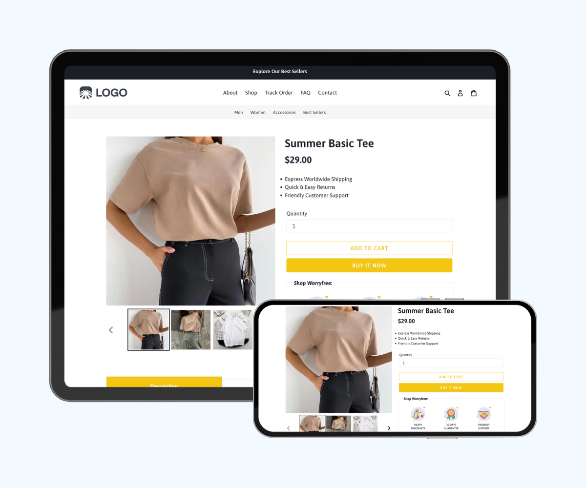 No need to spend weeks or months building your “perfect” store website. At SourceLow, we’ve teamed up with web design experts to create a beautiful, feature-packed store that matches your brand and maximizes conversions.